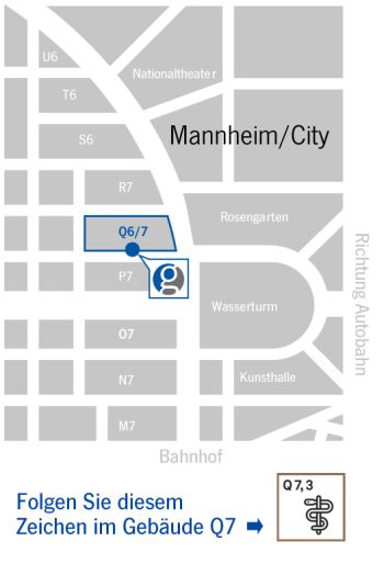 Auf dem Münzplatz, wählen Sie den Hauseingang mit dem Apothekenzeichen. Nehmen Sie den Fahrstuhl ins 2. OG. Über den Dachgarten gelangen Sie zur Praxis. Folgen Sie den Wegweisern mit unserem Logo.